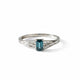This elegant 14K white gold ring features a striking 0.46-carat natural blue diamond at the center, flanked by 0.45 carats of dazzling white baguette diamonds. Its refined design blends modern sophistication with timeless charm, making it a perfect choice for everyday elegance or special occasions.
