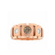 This 14KT rose gold ring features a 0.80ct chocolate diamond flanked by 0.50cts of brilliant white diamonds, combining modern design with rich warmth and timeless sophistication.