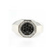 This 14KT white gold ring features a bold cluster of striking black diamonds, framed by a halo of sparkling white diamonds for a powerful, modern statement.