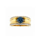 This 14KT yellow gold ring features a bold round blue diamond center, framed by sparkling white diamond rows, creating a luxurious blend of brilliance, elegance, and style.