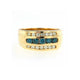This 14KT yellow gold ring features a bold center row of vibrant blue diamonds, framed by sparkling white diamonds, offering a striking balance of color and brilliance.