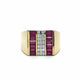 14KT yellow gold ring featuring baguette-cut rubies accented by twin rows of sparkling diamonds. A striking yet refined design that blends bold color with timeless elegance and sophistication.
