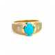 This 14kt gold ring features a vibrant turquoise cabochon center accented by sparkling natural diamonds, blending bold color with timeless elegance for a refined, sophisticated look.