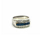 This 14KT WHITE gold ring features a bold center row of vibrant blue diamonds, framed by sparkling white diamonds, offering a striking balance of color and brilliance.