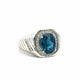This 14KT white gold ring features a striking oval London Blue Topaz, accented with sparkling diamonds in a bold, elegant design perfect for refined sophistication.